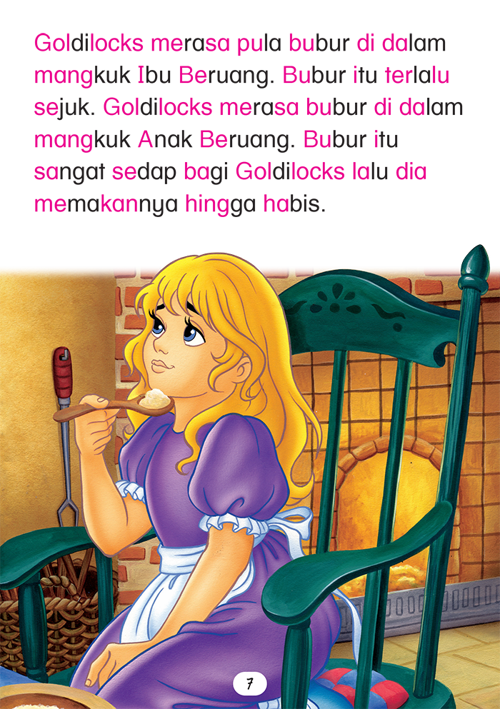 Beruang tiga beranak keluar bersiar-siar sebentar. Pada ketika itulah Goldilocks masuk ke rumah keluarga beruang itu. Apakah yang dilakukan oleh Goldilocks di rumah itu dan apakah kesudahan kisah Goldilocks?