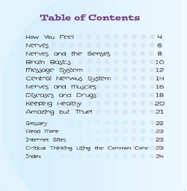 The nervous system is the communication control center of the body. Use your senses, and learn how messages go through the nervous system from the busy brain to ticklish toes.